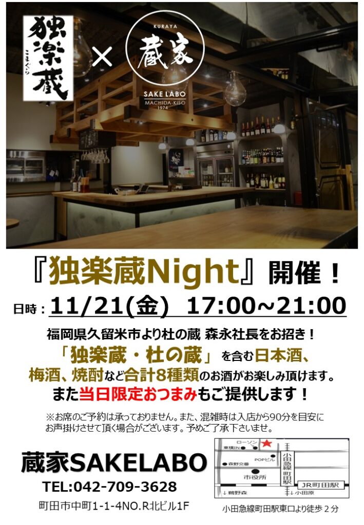 2025年11月21日(金) 〈蔵家 SAKELABO 日本酒イベント〉『独楽蔵Night』開催